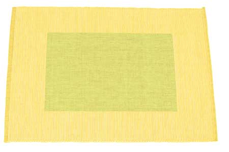 Diese Stoff-Tischsets können von beiden Seiten verwendet werden. Die Rückseite hat die umgekehrte Farbstellung der Vorderseite (z.B. helles Rechteck innen, dunklerer Rand außen bzw. umgekehrt).