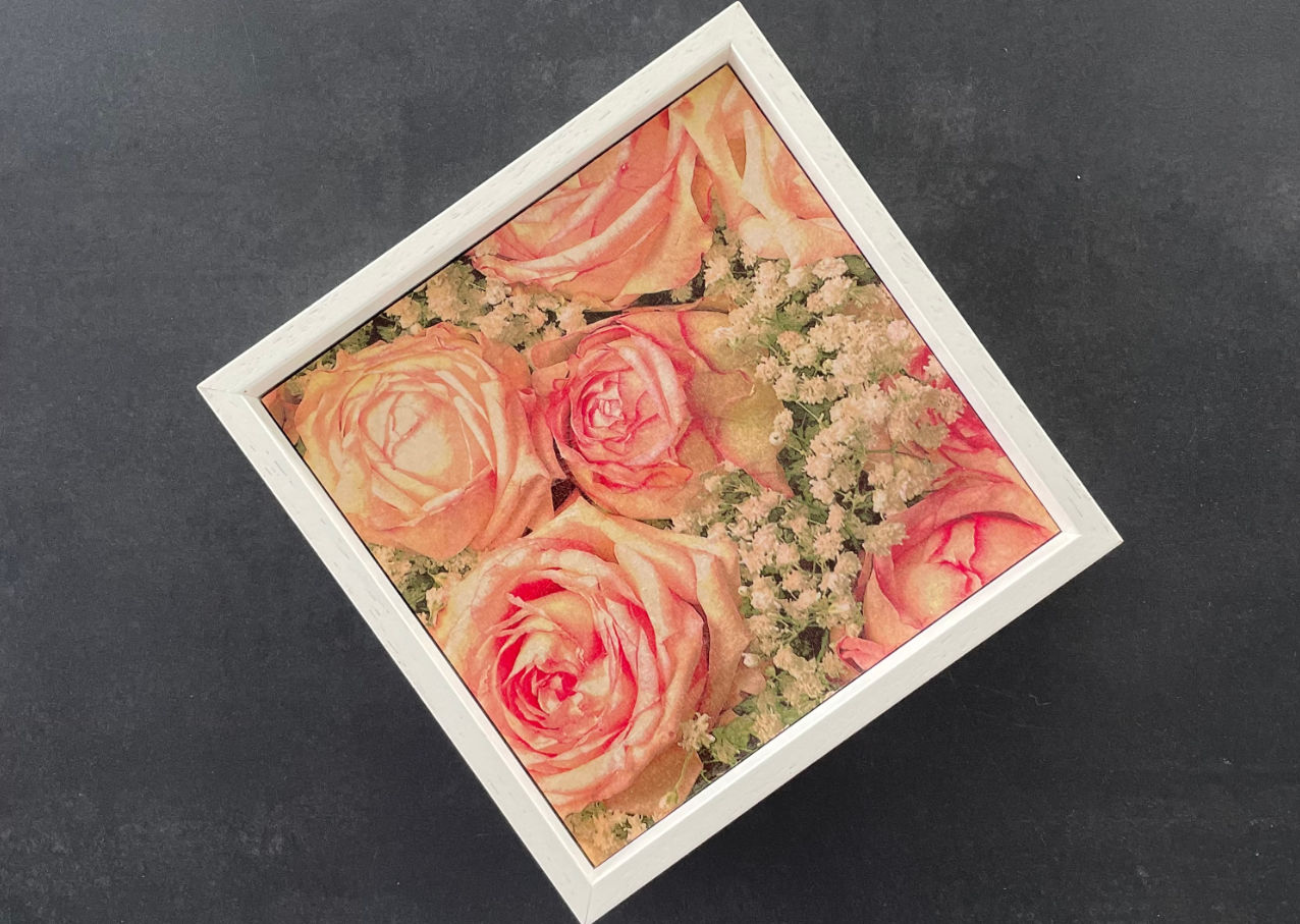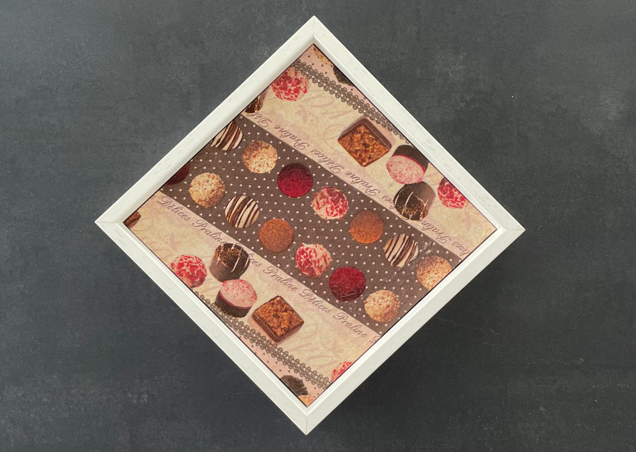 Der weiß lackierte Rahmen mit seiner natürlichen Holzstruktur ergibt im Zusammenspiel mit der glatten Epoxidharz-Schicht, die unterschiedliche Bildmotive perfekt versiegelt, eine einzigartige Komposition. Die Gestaltungsmöglichkeiten sind praktisch endlos (z.B. bei Serviettentechnik oder Kollage), und wir werden diese Kollektion mit unterschiedlichen Techniken kontinuierlich erweitern!