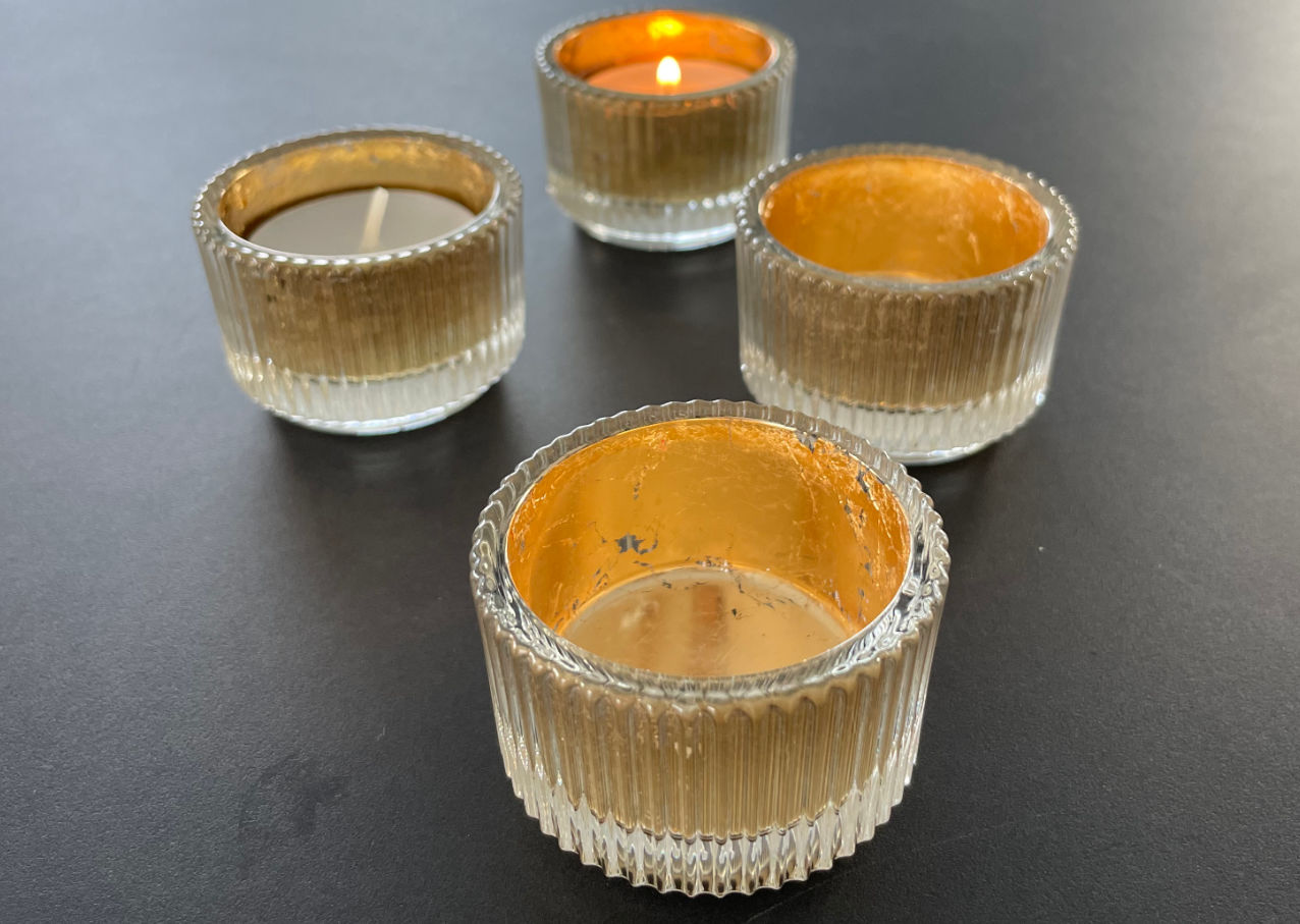 innen vergoldete Teelichthalter aus Glas, ein bisschen Art Deco und ganz viel Glamour! Jeder Teelichthalter ist ein kleines Unikat, kommt direkt aus der Tischkunst-Ideen-Schmiede und ist natürlich Made in Germany.