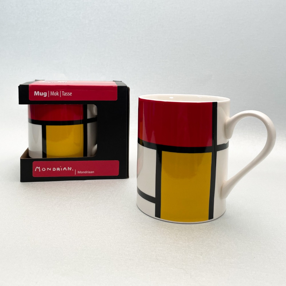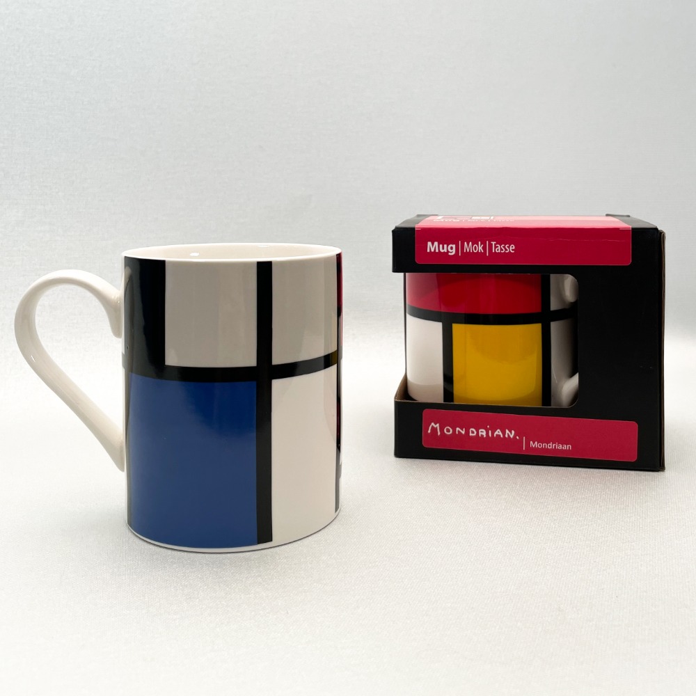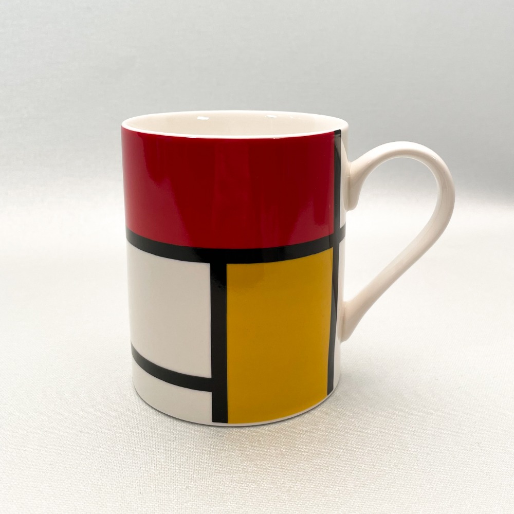 Der Henkelbecher im bekannten Design von Piet Mondrian