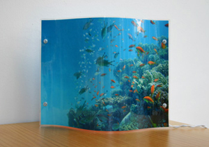 Eine Seite erinnert -vor allem, wenn sie eingeschaltet ist- an ein Aquarium, die andere hat etwas mehr Tiefsee-Charakter: