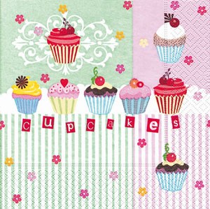 Servietten 33 x 33 cm, bedruckt, Design: CUPCAKES