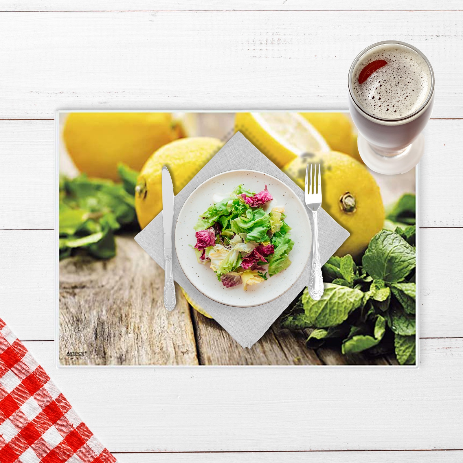 Zitronen und Minze- frischer geht es nicht im Sommer! Ein Tischset, das sofort italienisches Sommer-Gefühl verbreitet. Unser Tipp zur schnellen Deko: echte Zitronen auf den Tisch, ein paar Kräuter und sonnengelbe Servietten dazu und sofort Sommerfrische genießen! Ihre Gäste werden begeistert sein.