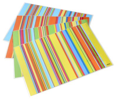 Alle Artipics- Tischsets in Stripes-Designs sind in den gleichen Farben (nur in veränderten Anteilen) komponiert und passen daher immer zusammen! Mit diesem Angebot erhalten Sie 4 Stück "sortiert", also von jeder möglichen Farbstellung des Design "Stripes" eins. Die Tischsets deser Serie sind gelb-bunt, hellblau-bunt, hellgrün-bunt und orange-bunt. Auch diese finden Sie einzeln hier in unserem Händlershop ARTIPICS Tischkunst. Für die Frühjahrsdeko in frischen bunten Farben sind diese Tischsets / Platzsets genau so geeignet wie als Gute-Laune-Tischsets fürs ganze Jahr und die ganze Familie! Design: dmk/artipics * * * * * Alle unsere Tischsets haben einen umlaufenden transparenten Rand von ca. 3 mm Breite und abgerundete Ecken. * * * * *
