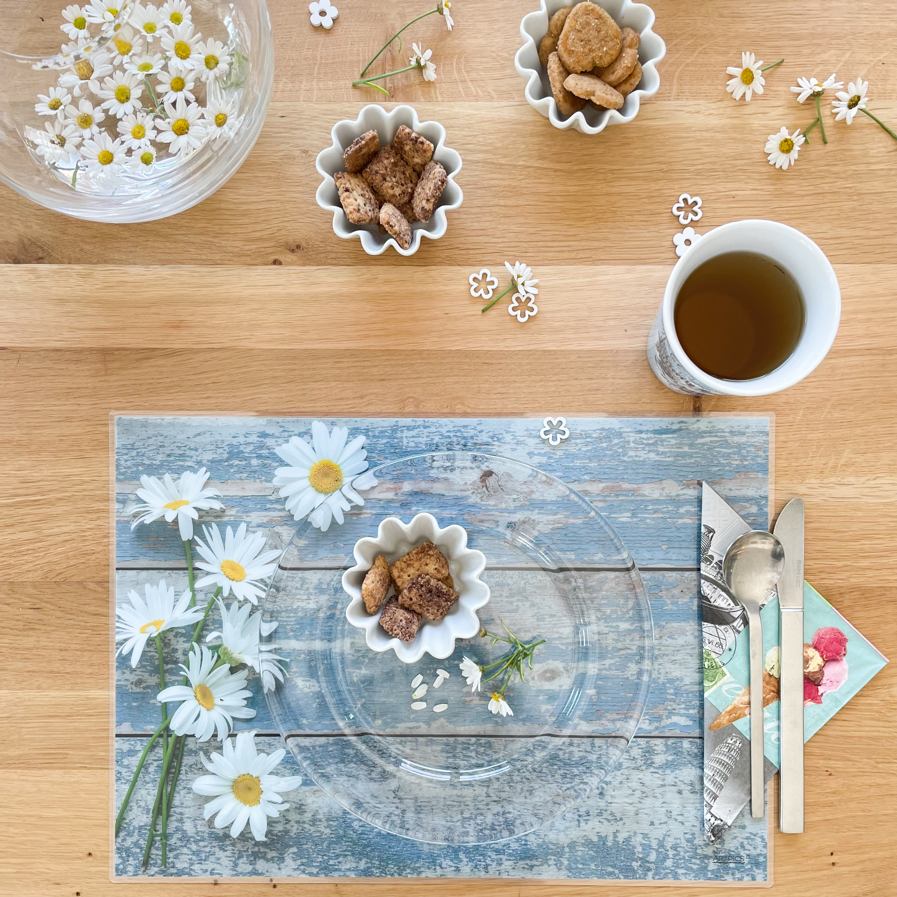 Wussten Sie, dass die Margerite im griechischen Altertum der Aphrodite, der Göttin der Liebe und der Schönheit, geweiht war? Übrigens ist sie auch eine der typischen Orakelblumen.... sie liebt mich, sie liebt mich nicht (oder er? ;-).... Im Haus sollen Margeriten für Harmonie und Freude sorgen. Damit ist doch fast alles gesagt, oder? Uns gefällt unser Tischset "Waiting for you" so gut, weil es ein bisschen verspielt, aber doch ganz klar in Form und Farbe ist. Ein Tischset mit "einfacher" Schönheit- wie die Margerite selbst.