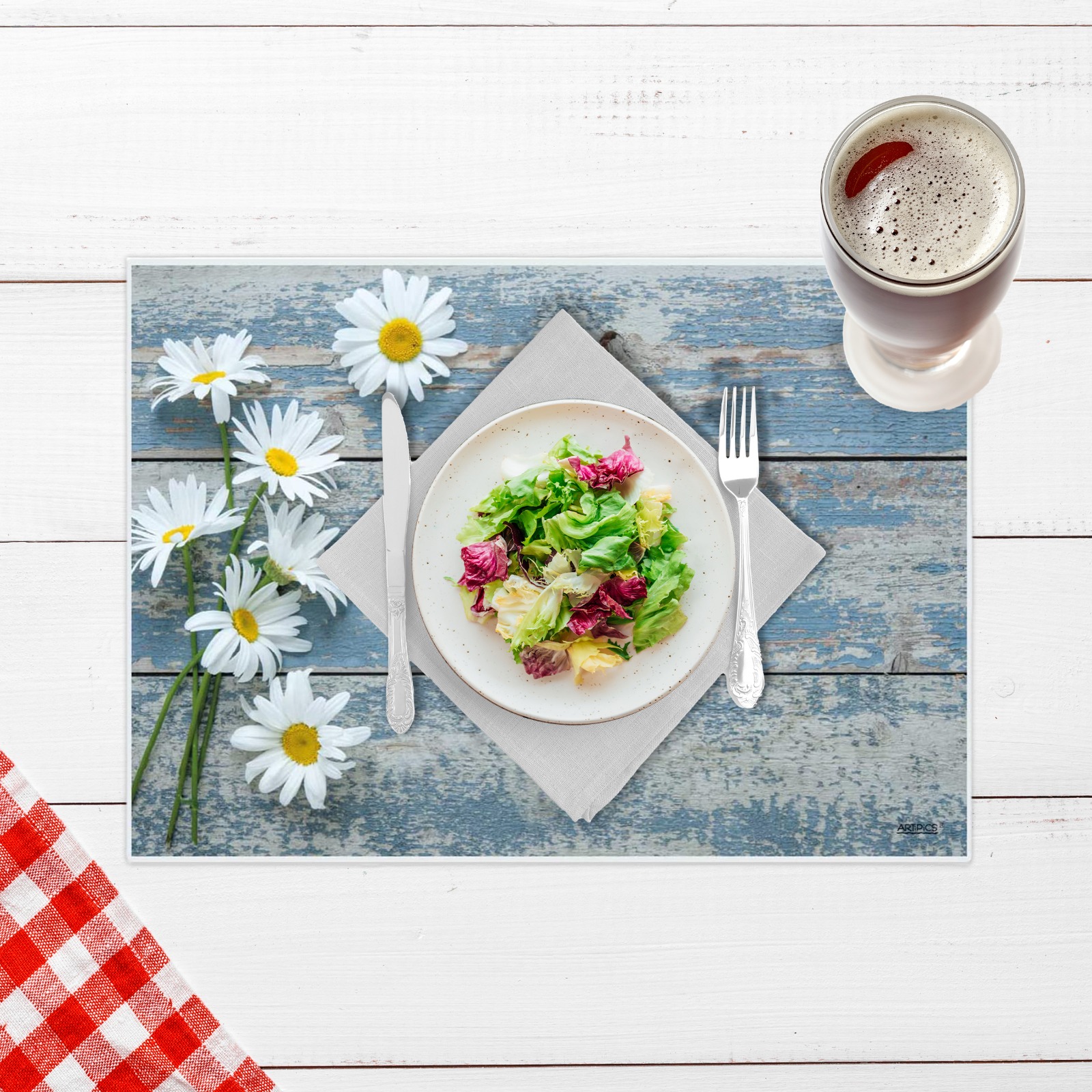 Wussten Sie, dass die Margerite im griechischen Altertum der Aphrodite, der Göttin der Liebe und der Schönheit, geweiht war? Übrigens ist sie auch eine der typischen Orakelblumen.... sie liebt mich, sie liebt mich nicht (oder er? ;-).... Im Haus sollen Margeriten für Harmonie und Freude sorgen. Damit ist doch fast alles gesagt, oder? Uns gefällt unser Tischset "Waiting for you" so gut, weil es ein bisschen verspielt, aber doch ganz klar in Form und Farbe ist. Ein Tischset mit "einfacher" Schönheit- wie die Margerite selbst.
