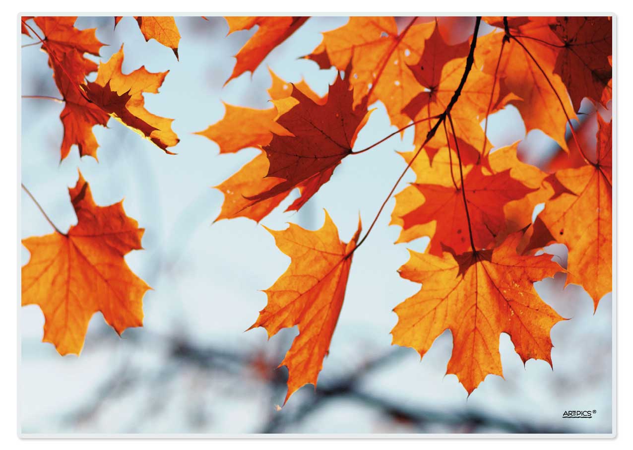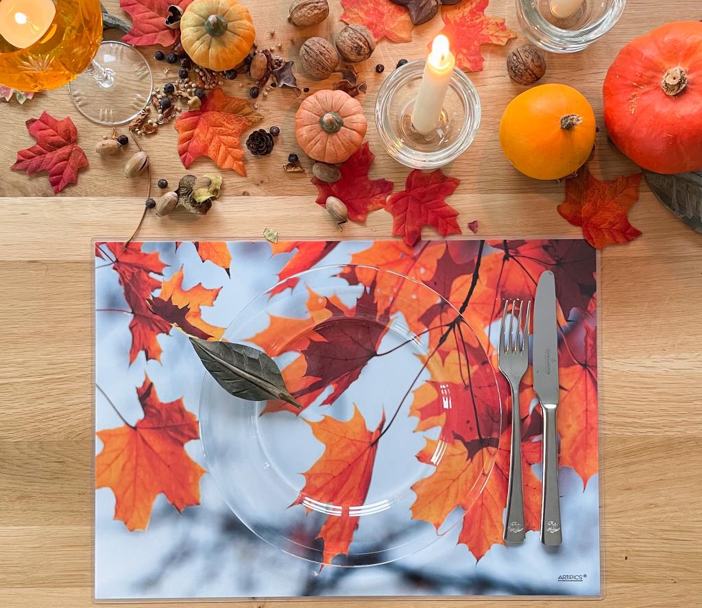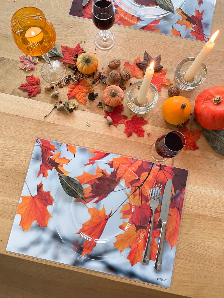 Ein wunderbares Tischset für den herbstlichen Tisch: Herbstblätter vor klarem Himmel. So heißt dann auch die Originalaufnahme "Autumn Leaves on Sky".