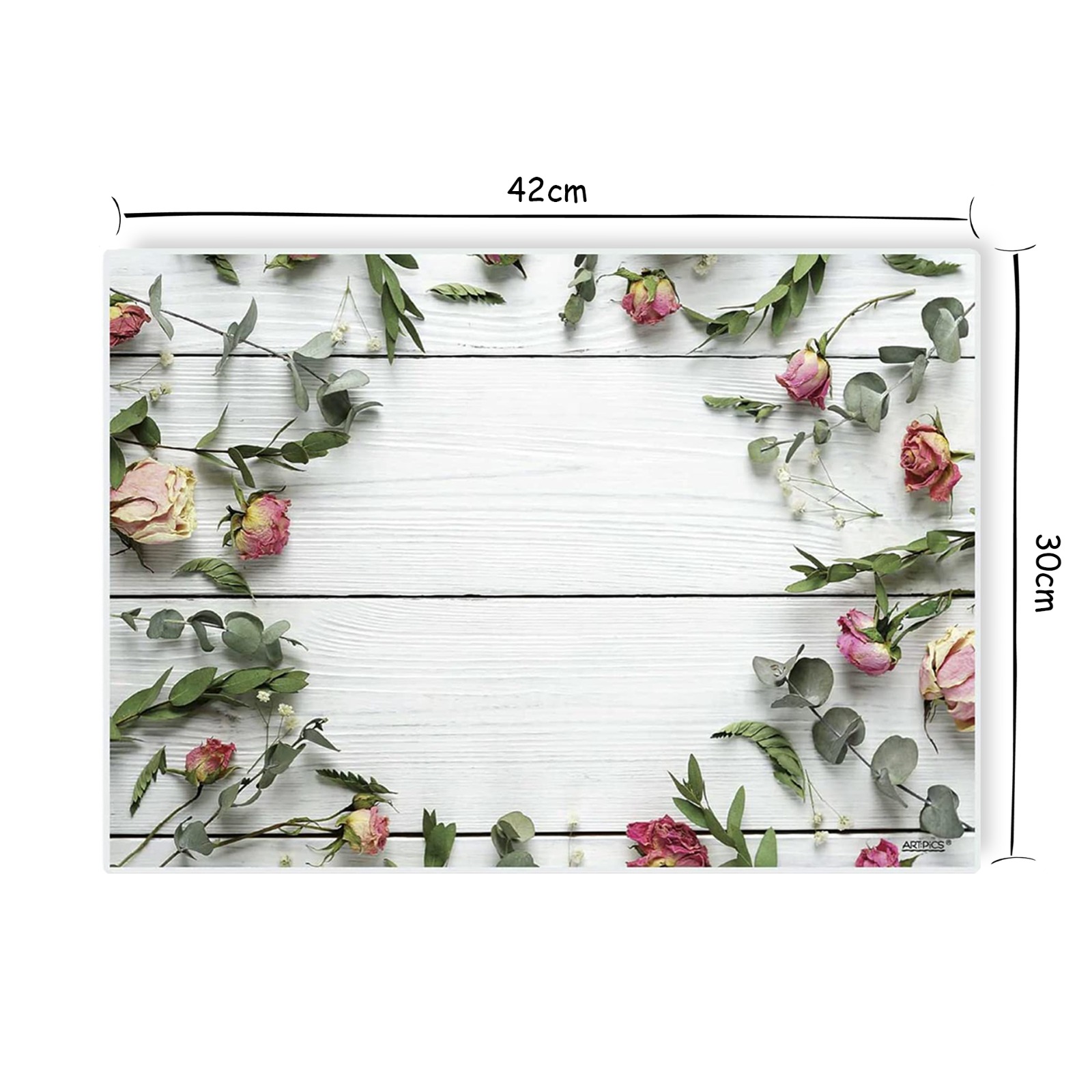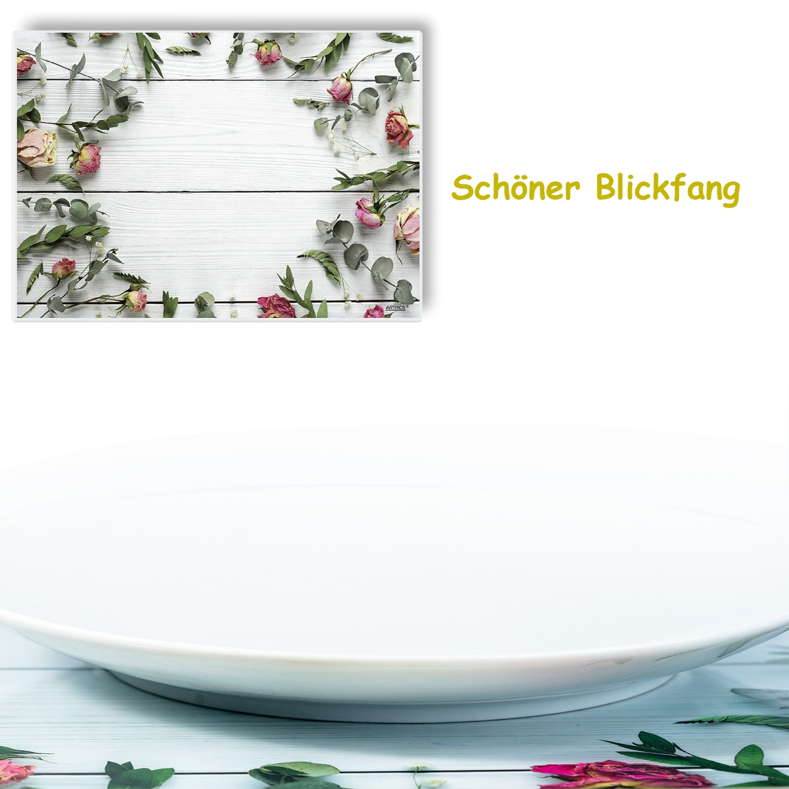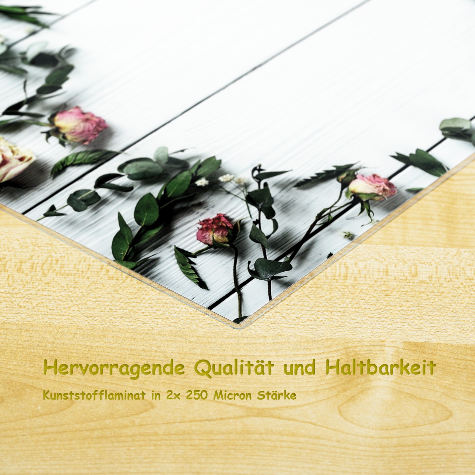 Et voilá: hier rankt sich das Bildmotiv um den Teller, farblich dezent, ein bisschen Landhausstil, ein bisschen romantisch mit getrockneten Rosen, unaufdringlich und trotzdem intensiv in der Wirkung!
